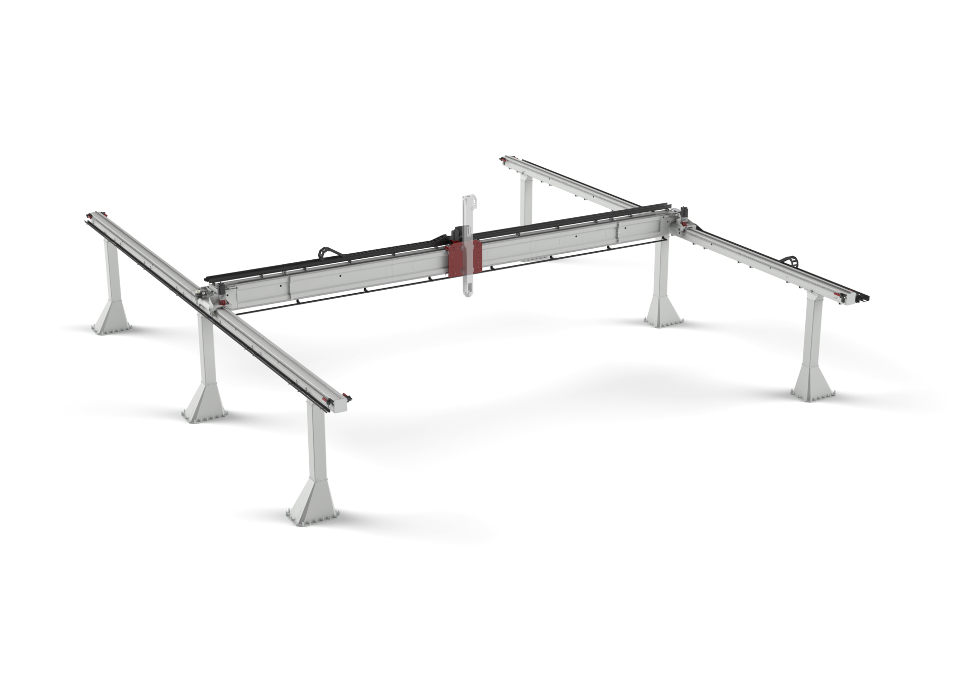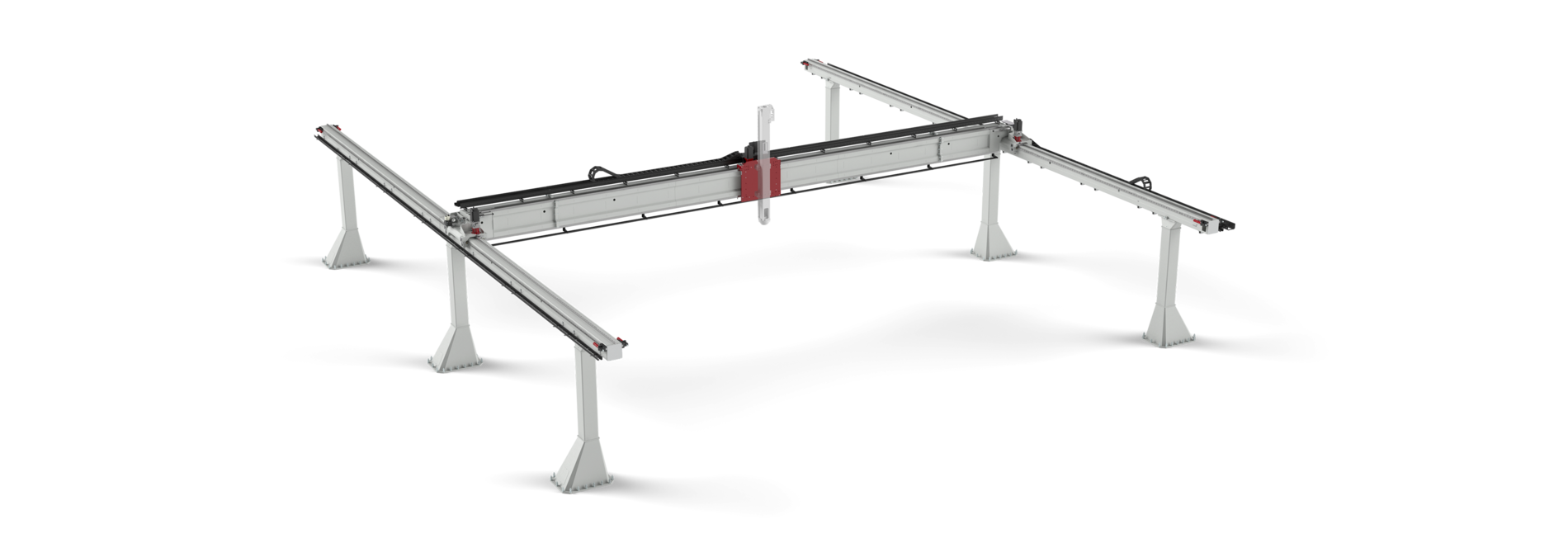 With the new high performance gantry, maximum stroke of 14 m for the Y-Axis is now possible. High dynamics of the new gantry will help to improve the overall cycle time of the system by speeding up the process. FP-5-HP area gantry is especially suited to applications where large work areas must be covered with a highest possible dynamics. The load of up to 1100 kg could be mounted on the Y-Carriage, while in case of gantry with Z-Axis effective high dynamic payload of up to 500 kg is achievable.