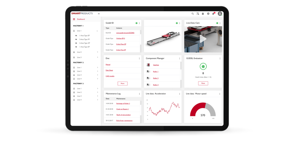 For smart products, Güdel provides this digital twin on the myGüdel customer and service portal.