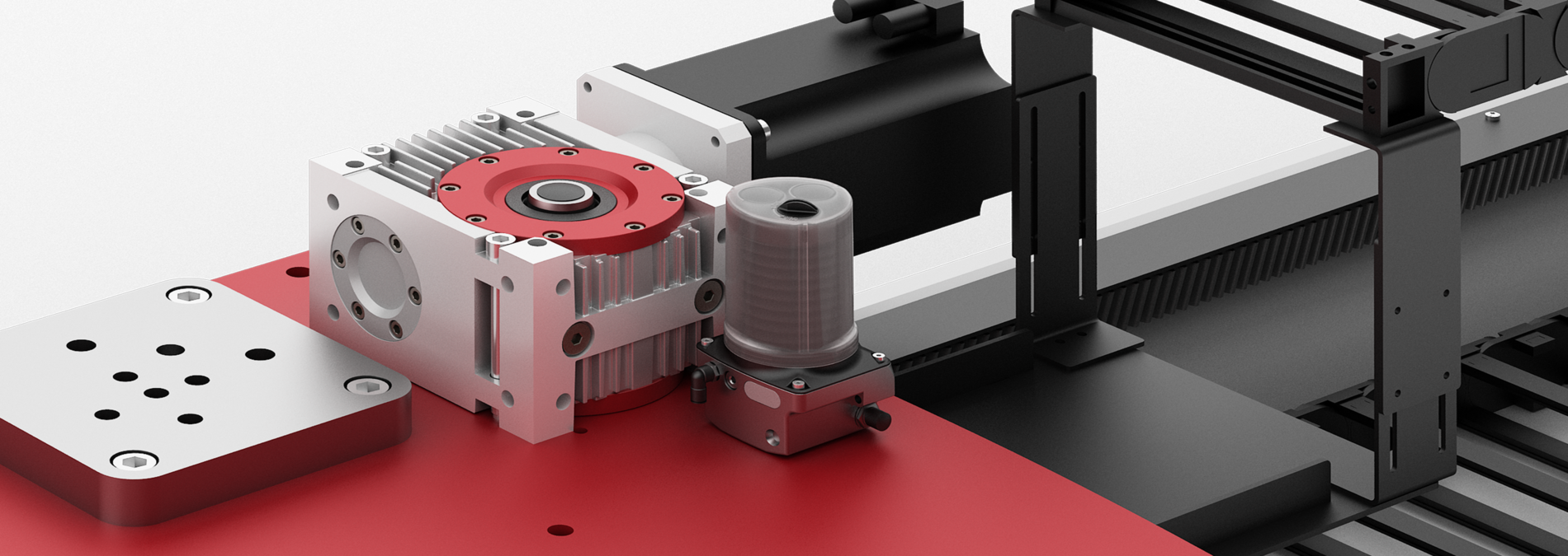 The FlexxPump automatic lubrication system is a lubrication system for Güdel components. The FlexxPump feeds the lubricant from the cartridge into the lines. Depending on the design, the lubricant is distributed through splitters, combined through Y-segments, or distributed directly to the lubrication areas. Rack and pinions are lubricated by lubricating pinions; guideways are lubricated by lubricating elements.